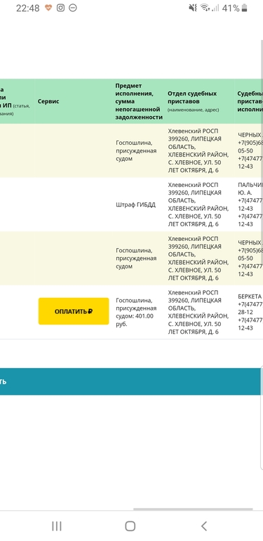 Не совсем поняла, подскажите, задолженность только 401р? А что это за госпошлины и штраф гибдд без сумм?