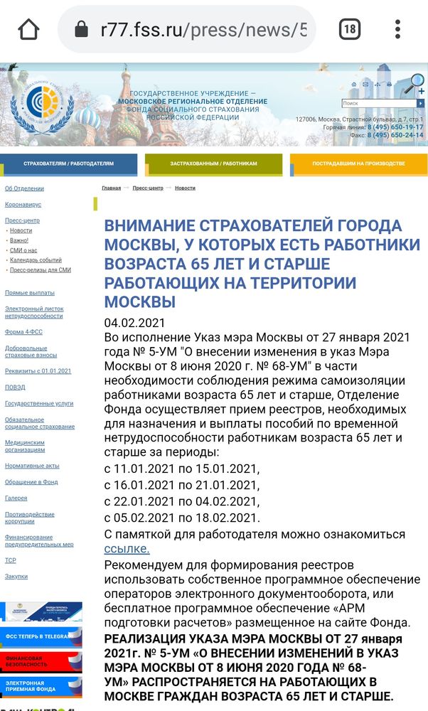 Больничный 65+