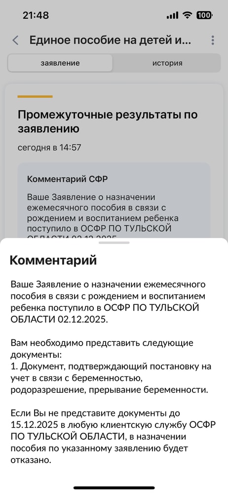 Пособия, пенсия, льготыПодаю на единое пособие, в том месяце затребовали документ (какой? Если они сами мне платят по уходу, на рождение и тд, все у них есть), по горячей линии предложили свидетельства о рождении детей привезти. Привезла, специалист вроде бы все сделала, но статус заявления не изменился. Как будто ничего не прикрепили. Отказано. Пробую второй раз, опять такая же история. Они издеваются?! У кого такое запрашивали? Может другой какой документ нужен? По горячей линии ничем помочь не могут