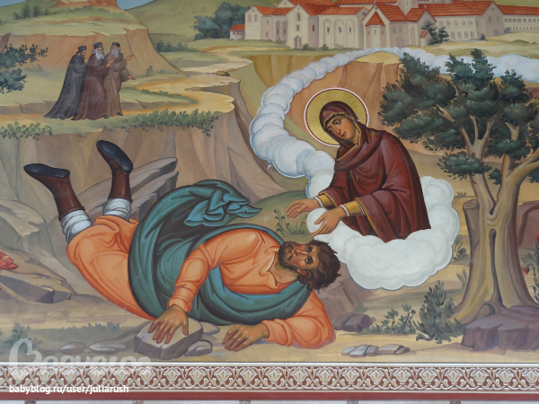 Мы снова собрались уезжать, и искали на улице у храма нашего папочку, который куда-то испарился. Вдруг мой сыночек снова решил от меня удрать, и побежал обратно в Храм. Я к тому моменту уже успела снять с себя все накидки: юбку и платок, которые выдаются при входе в храм, и стояла в шортах и майке. Одним словом, чтоб забежать за Тимофеем мне нужно было еще 3 минуты времени, чтоб обратно облачиться в подобающий вид. Но я не успела….Тимофей забежал в храм, подбежал к иконе, висевшей ниже остальных рядом с мощами Св. Лазаря и приложился к ней лбом, постоял так несколько секунд и выбежал обратно на улицу ко мне.