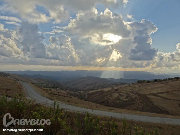 Ну, и как полагается на обратном пути мне не повезло. Как раз подъезжая к пляжу Афродиты, где я планировала искупаться, началась страшная гроза и имеено в этом месте ливанул такой дождь, так громыхало, били такие молнии, что я боялась, как бы они не стукнули в нашу машину. Поэтому мимо этого пляжа мы промчались на всех парах в сторону нашего отеля. А муж с сарказмом надо мной посмеялся: - «Это Святой Лазарь - ярый борец против культа Афродиты на Кипре, отвел нас от этого места» .)))