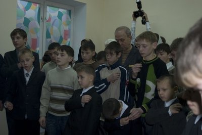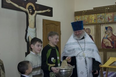 Перед началом обряда освещения Отец Александр обратился к собравшимся со словами архипастырской проповеди: "Сегодня мы будем просить Господа, чтобы по молитвам святителя Николая благодать Божия всегда пребывала здесь и сказал свои слова благодарности всем благотворителям и жертвователям, которые помогли осуществить такой проект на территории детского дома. Когда началась служба, дети и все присутствующие замерли, запел мужской хор и зал наполнился атмосферой благодати, обновления и спокойствия.