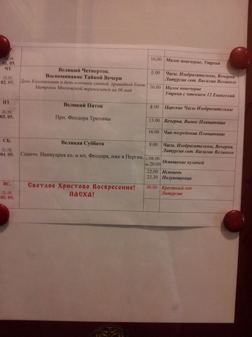Если кого интересует-завтра вечерняя служба начинается в 16:45,после чего будет освящение вербы.