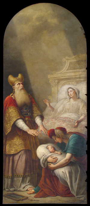 В восьмой день по рождении Предтечи пришли священники и родственники Захарии в дом его для участия в обряде обрезания младенца; при этом они хотели назвать его именем отца — Захариею. Но мать младенца не соглашалась на то. По пророческому предвидению Елисавета настаивала, чтобы ее сына нарекли Иоанном (тем именем, которым повелел наречь его ангел). От своего мужа она не могла слышать об этом, — ибо Захария возвратился из храма в дом свой, имея как бы связанный язык, и не мог рассказать своей супруге, что он видел ангела, который благовестил ему о зачатии сына и повелел при этом наречь ему имя Иоанн.