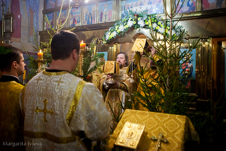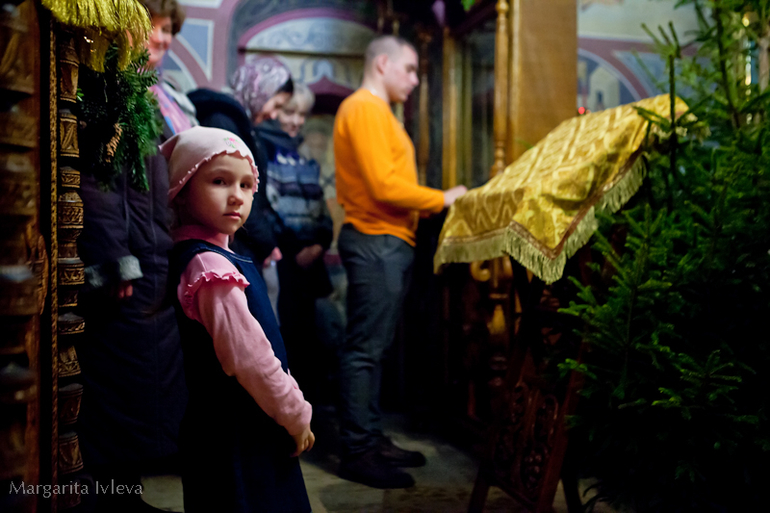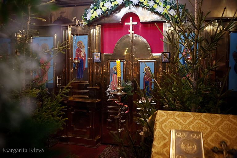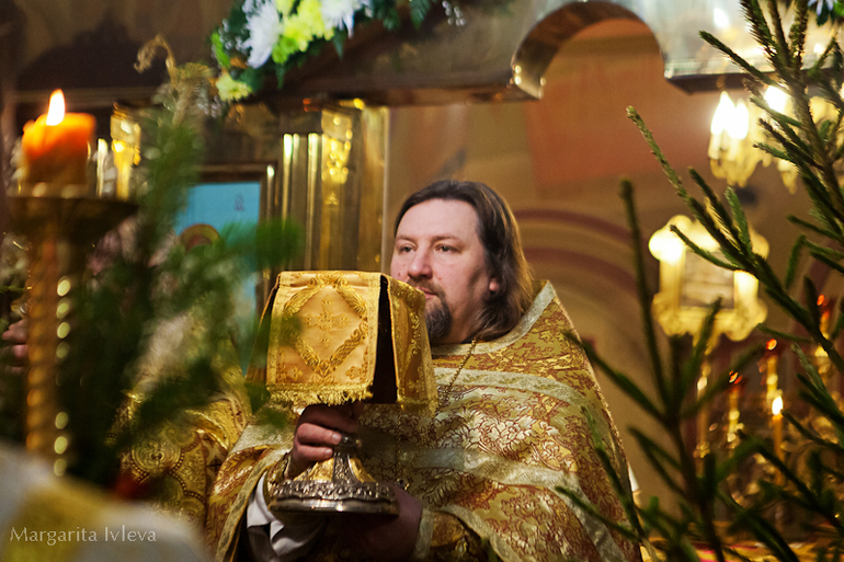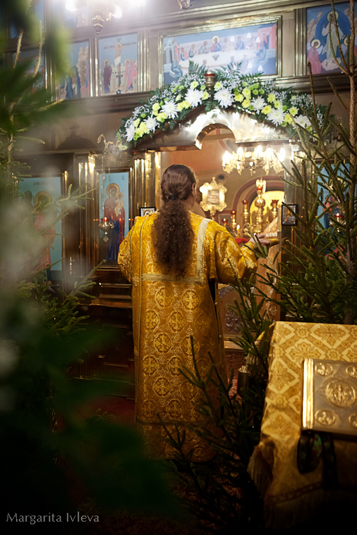 Господь так устроил, что именно Рождествуенскую службу я впервые удостоилась пофотографировать. Настоятель благословил, чтобы я тихонечко, никому не мешая , фотографировала. Я даже стояла в самом начале, у алтаря (впервые, обычно где-то чуть ли не у выхода). Камера моя фотографирует очень громко (характерный щелчок), и каждый такой щелчок мне давался очень тяжело, мне казалось, что все вокруг смущаются (кто эта девушка, с какой стати она фотографирует??) Дело в том, что в этом Храме меня мало кто знает, мы раньше ходили в другой Храм, но вот в последнее время я хожу на службы сюда, полюбила очень Настоятеля, замечательный батюшка, помогал мне в жизни уже не раз, очень душевный, добрый и молится всегда на службе так искренно!