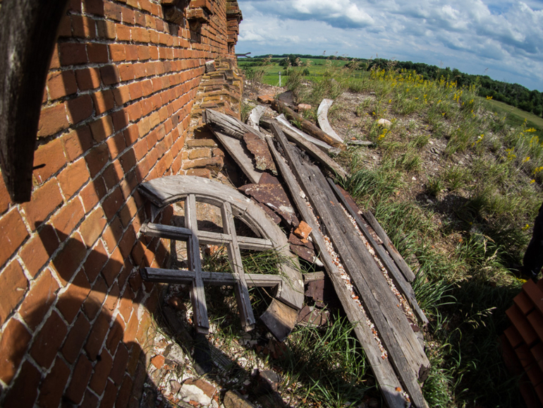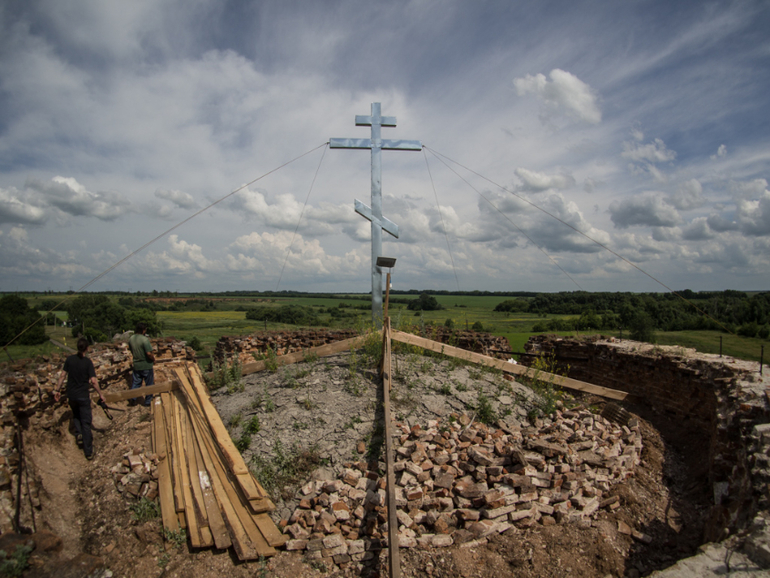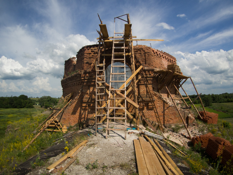 Храм, конечно, требует основательного ремонта, но на нем уже есть крест, есть окна, и с Благовещения этого года в нем проводятся службы. Пока пол покрыт картоном, но энтузиазм отца Бориса свернет горы, я не сомневаюсь!)
