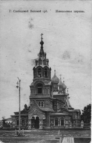 P.S.: Совсем забыла написать, что в нашем храме в 1880 году крестили Александра Гриневского (Грина). Вот как сам Грин писал об этом:"Около двух часов дня показались крыши уездного города Слободского. Придя в город, я сделал попытку разыскать семью ссыльного поляка Тецкого, который был моим крестным отцом, так как я появился на свет в Слободском, когда мой отец служил там в конторе пивоваренного завода. Однако Тецкий с семьей уехал в Сибирь..."