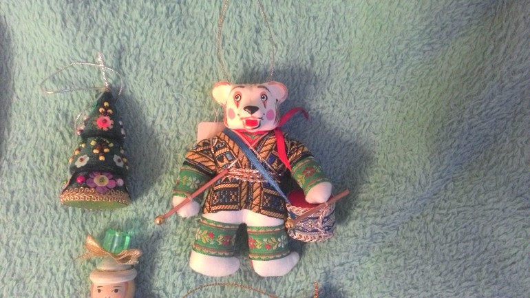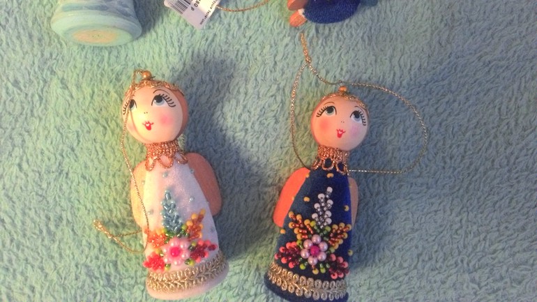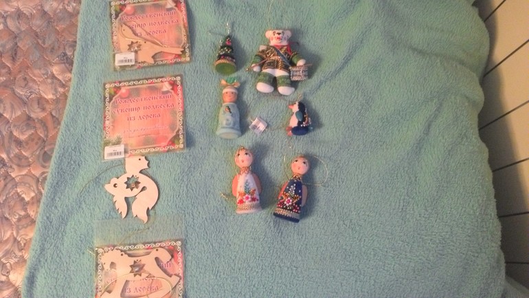 Игрушки вышиты вручную бисером. Еще там есть елочные деревянные шарики, расписанные вручную (от 50 р.).