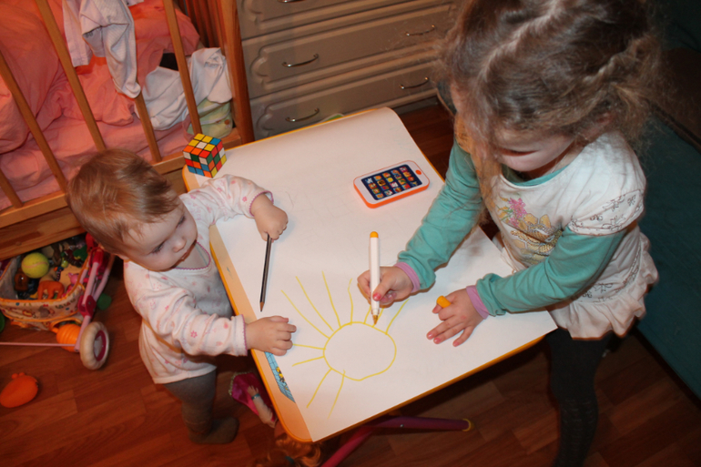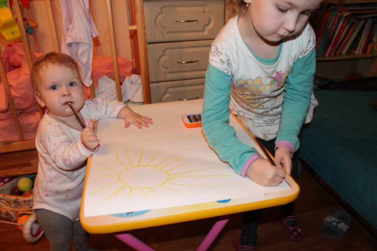 Рисовали вместе, но что рисовать придумывала сама Ульяна и руководила процессом: