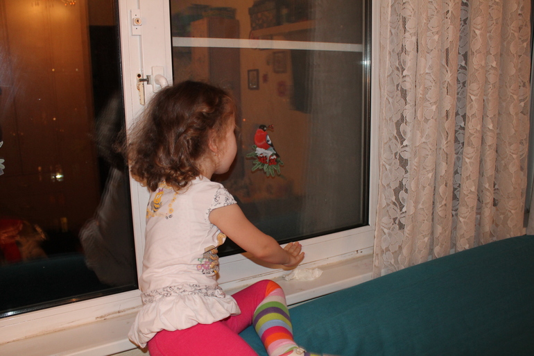 В первый день мы поселили на наших окошках вот таких чудесных снегирей: