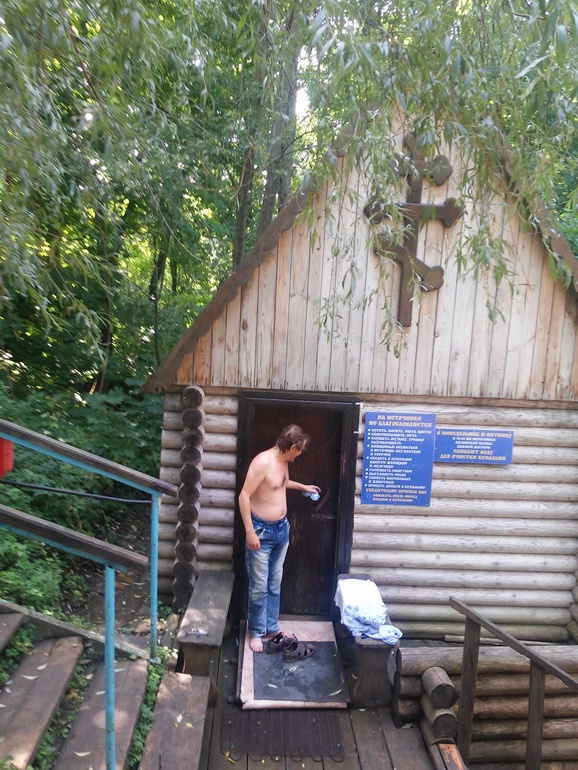 И, конечно, святой источник, который разрыли, вывезя из оврага 25 камазов мусора. Вода чистейшая. Купель ледяная. Но моего мужа это не остановило☺