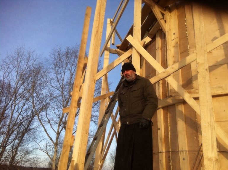7 лет назад было принято решение строить новый храм рядом. Идея выглядела совершенно фантастической, денег не было совсем. Только летом, за счет дачников, храм мог набрать какие-то небольшие средства, а зимой ходили полторы старушки и малочисленные приезжие как мы. Но как-то постепенно все стало складываться. Один местный житель оказался архитектором, и сделал проект (впоследствие он стал прихожанином, и его жизнь потрясающе изменилась!). Приход стал прирастать, люди жертвовали на стройку, кто сколько мог. И такими частями начали строить. Появились деньги - залили фундамент, и так далее.