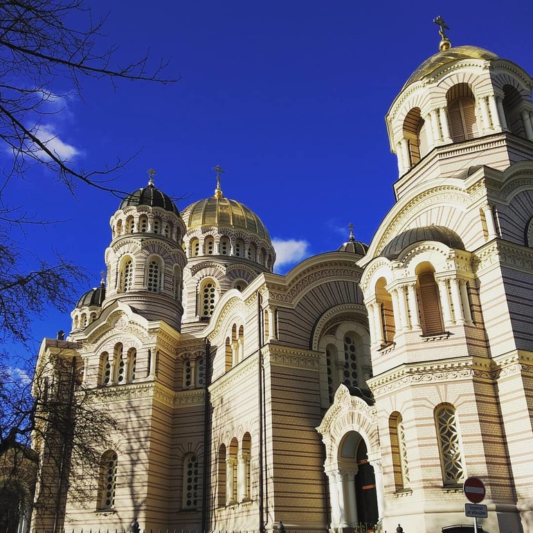 И 3 фото, как видите погода в Риге была прекрасная. Собор, который покорил мое сердце! Своей красотой, добротой прихожан. Это Рижский Кафедральный собор Рождества Христова! Внутри красоты неописуемой, там находятся Чудотворный список Тихвинской иконы Пресвятой Богородицы, к иконе ведет лесенка с красной дорожкой, много живых цветов, про драгоценности, которые в благодарность были дарованы и говорить не буду.