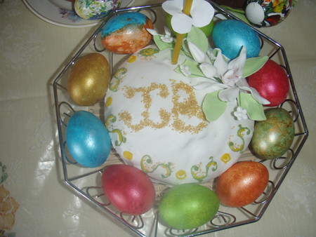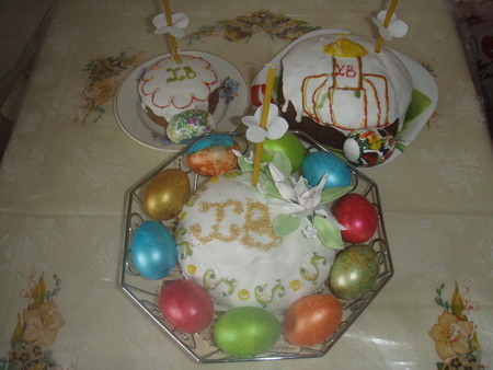 Православные праздникиОсвятили куличи,до этого ходили с Машей на службу,первый раз она у нас исповедывалась.Куличи пекла сама,цветок купила,но он из сахара,съедим.Вот только в тесто по-моему немого переборщила муки,оно не совсем рыхлое получилось,но я думаю они очень вкусные.Завтра расскажу!