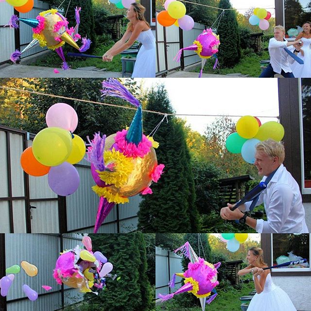 Ее наполняют различными конфетами, конфетти, шариками с пожеланиями, предсказаниями и т.д. на что хватит фантазии ). Подвешивают и разбивают палкой/битой по очереди с завязанными глазами до полного разрушения. После чего содержимое высыпается) Восторг играющих и окружающих с комментариями обеспечен! Можно заказать пиньята на заказ 8(925)175 92 43 Мария
