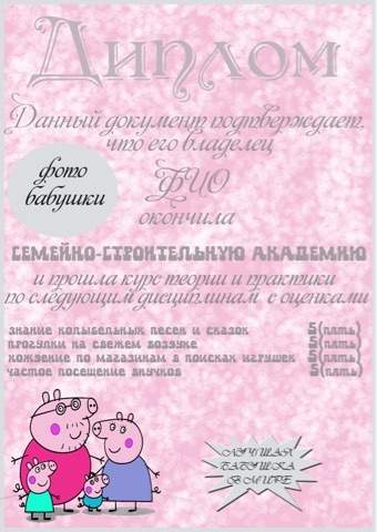 11) дипломы всем бабушкам, дедушкам, маме, папе