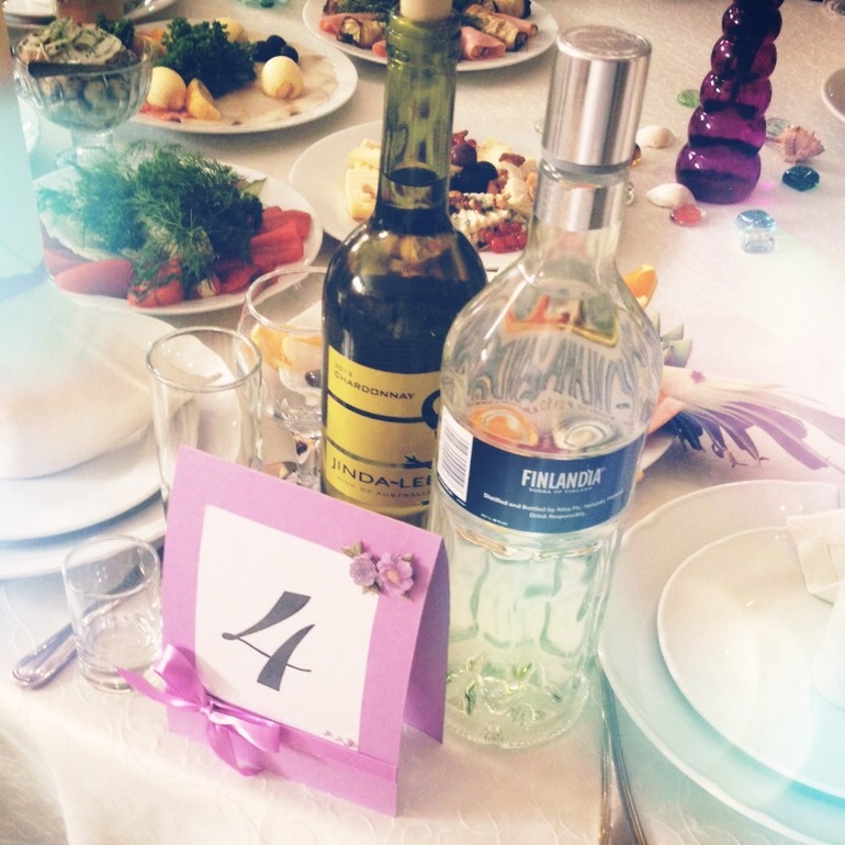Карточки с именами и номерами на столы, плакат-список с рассадкой гостей, растяжки с именами и датами, все - ручная работа!