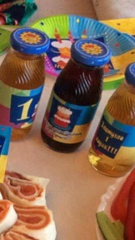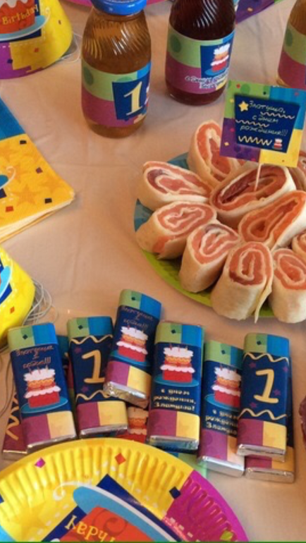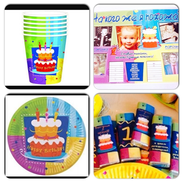 Детский ПраздникИнтересный очень набор был разработан под дизайн салфеток и стаканчиков, тарелочек и растяжку, купленных в магазине)