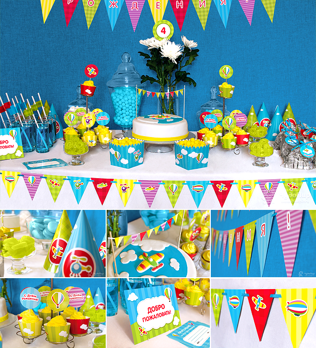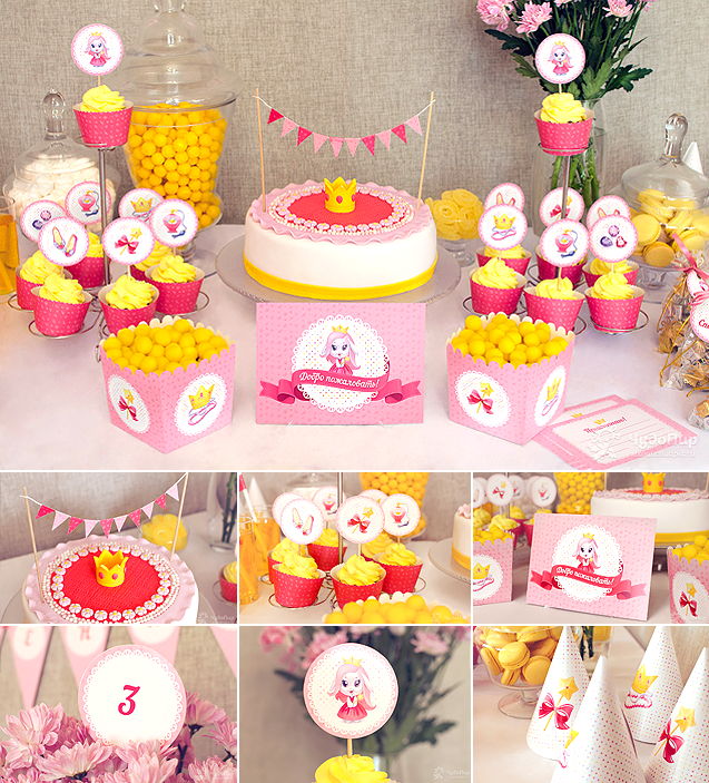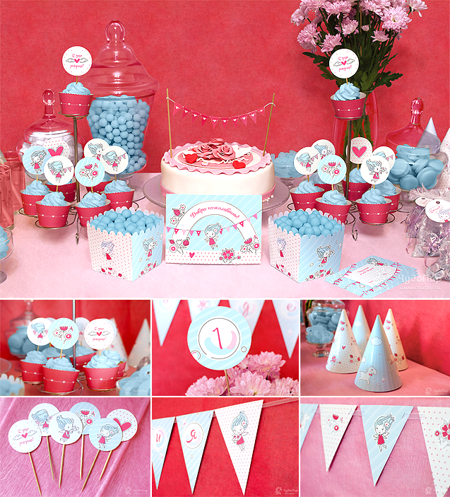 В каждом наборе есть все необходимые аксессуары для украшения сладкого стола, праздничные колпачки, пригласительные для гостей, всевозможные гирлянды! Все детали набора выполнены в едином стиле и рассчитаны на 15 персон.