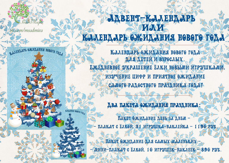 У нас есть два дизайна адвент-календаря - сине-голубой дизайн этого года и зеленый дизайн прошлого года, выбирайте, какой подходит больше вам.