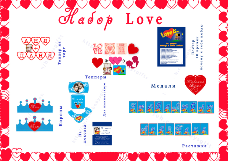 Взрослый праздникСовсем немного осталось до праздника Любви,устройте второй половинке романтический вечер. Набор для Декора за 150р. Растяжка, 10 причин почему я люблю тебя, этикетка ля шампанского, для шоколада, топпер на торт, маленькие топперы, короны и медали. http://vk.com/babysgifts