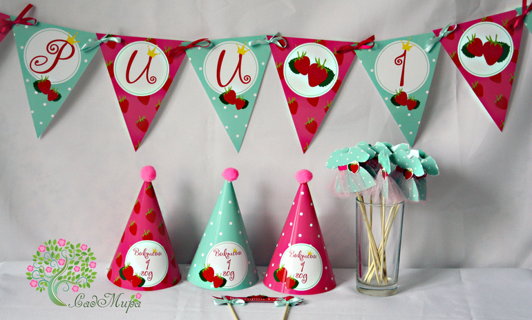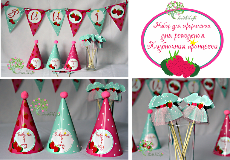 Набор для декора дня рождения "Клубничная принцесса". в стиле