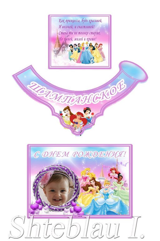 Детский ПраздникУдивите своего ребенка красивым и ярким праздником! Пусть День Рождения Вашего ребенка будет интересным и увлекательным! Сделаю для Вас украшения любой тематики, любого дизайна, цвета, с любыми надписями. Плакаты, гирлянды, этикетки на шампанское, обертки на шоколад, колпаки, анкеты гостей и многое другое. А вот набор для юных принцесс!