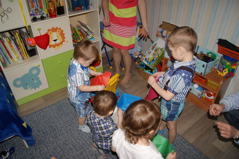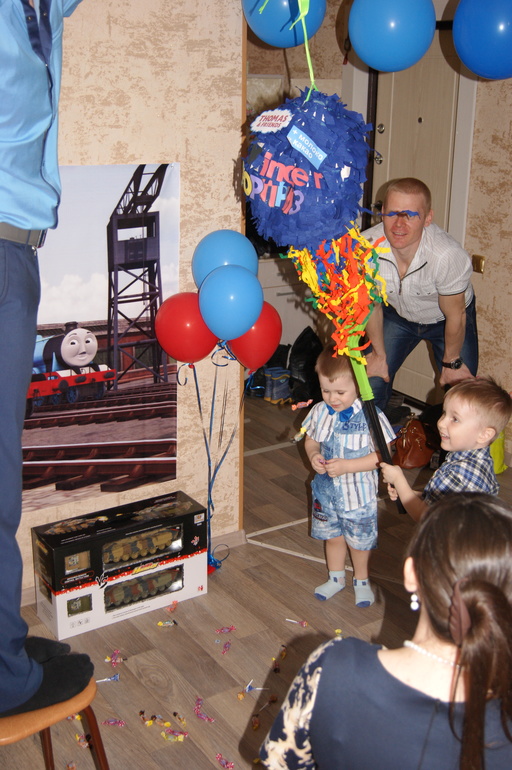 Третий конкурс - порвать на кусочки листы цветной бумаги и загрузить в вагон Томасу.