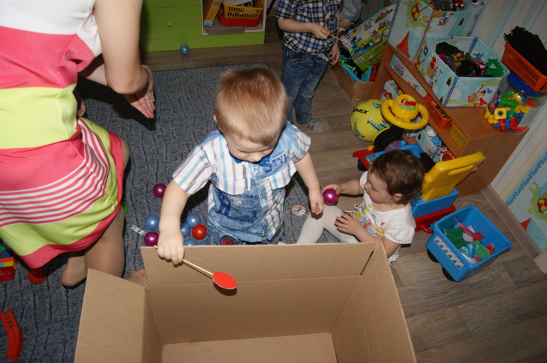 Четвертый конкурс - загрузить уголь в вагон))-собрать шарики в коробку))