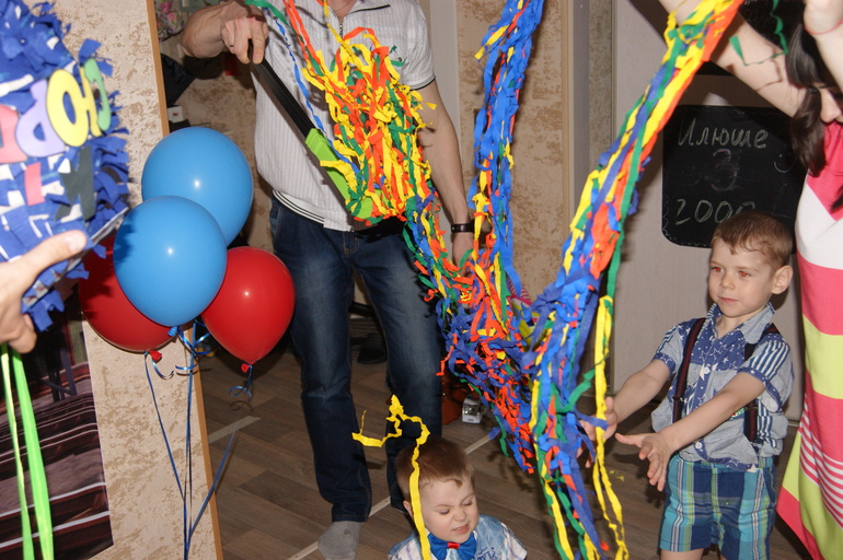 Еще я делала пиньяту!!!Это вещь!Но силенок мало у трехлетних детей))
