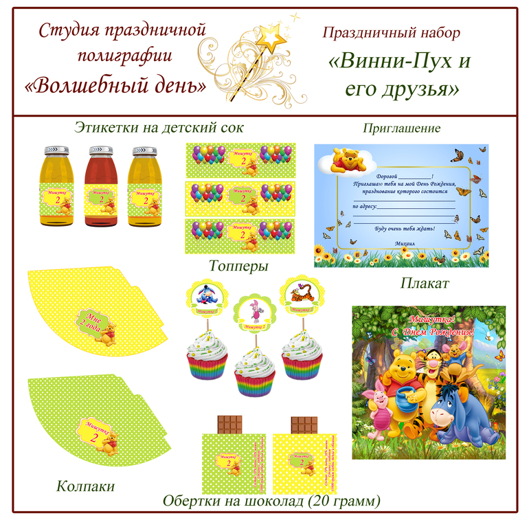 Набор для Дня Рождения "Винни-Пух и его друзья" (желто-зеленый)
