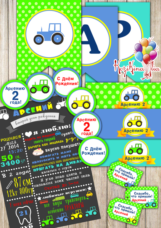 Аксессуары для Украшение праздникаЗдравствуйте, девочки! Появился новый набор "Тракторы" и меловый плакат с тракторами. Принимаю заказы на любые тематики.