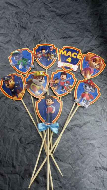12. Топперы на шпажке круглые, фигурные (т.е. по форме щенков или щита) -(шпажка включена) - возможен различный декор в виде вертушки, лент, и др.украшений