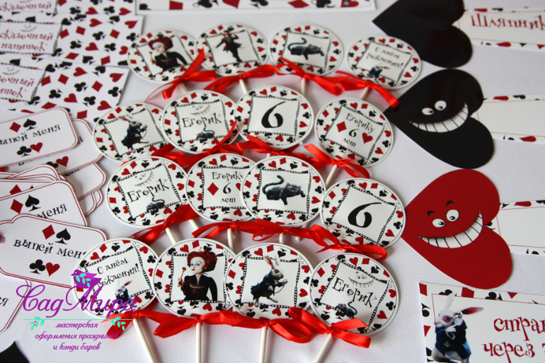 Набор для дня рождения в стиле Алиса в стране чудес (карты).