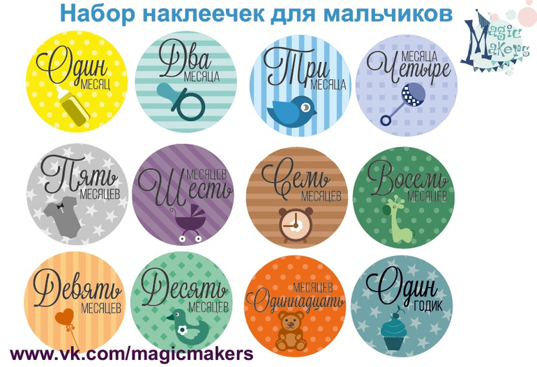 Представляю вам набор наклеечек (12шт) на каждый месяц рождения вашего малыша. Диаметр каждой наклейки - 8см