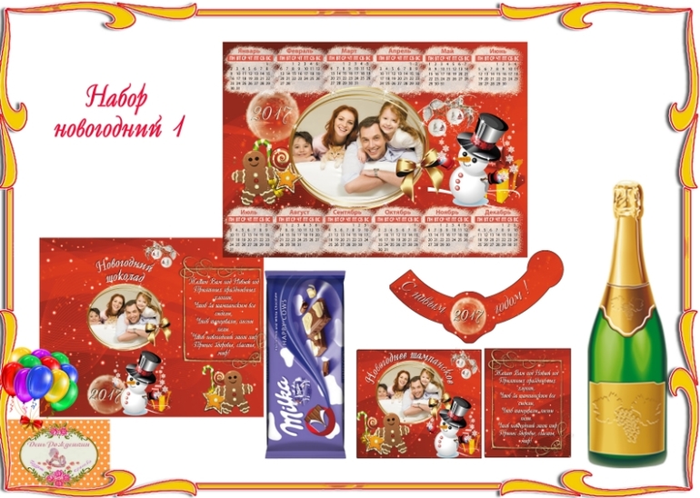 Новый ГодСкоро Новый год, если вы хотите удивить близких и родных, или может коллег по работе и не знаете как, то прекрасным подарком станет индивидуальный календарь на 2017 год, шампанское и большая шоколадка с фотографией. Текст может быть абсолютно любым. Скоро будет много много шаблонов. Цены на наборы приятно вас удивят! Все в электронном виде.https://vk.com/club106812096 моя группа вк