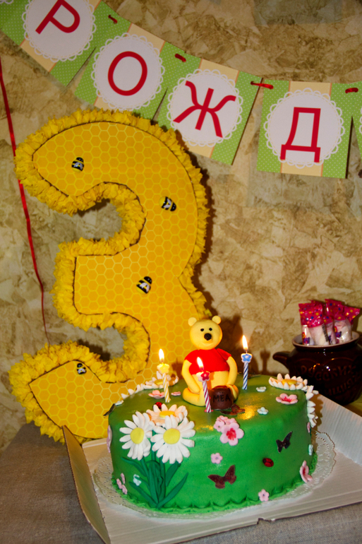 Аксессуары для Украшение праздникаМы отметили как всегда в семейном кругу, сделали в стиле винни пух, атрибуты, циферка и даже сама сшила платье. Пристраиваю циферку 3 и растяжку с днем рождения, а если топперы и другие нужны, то сделаю вам. Если нужно платье и могу продать.