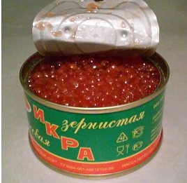 Икра хорошая, в меру соленая и плотненько утрамбованная в банку.