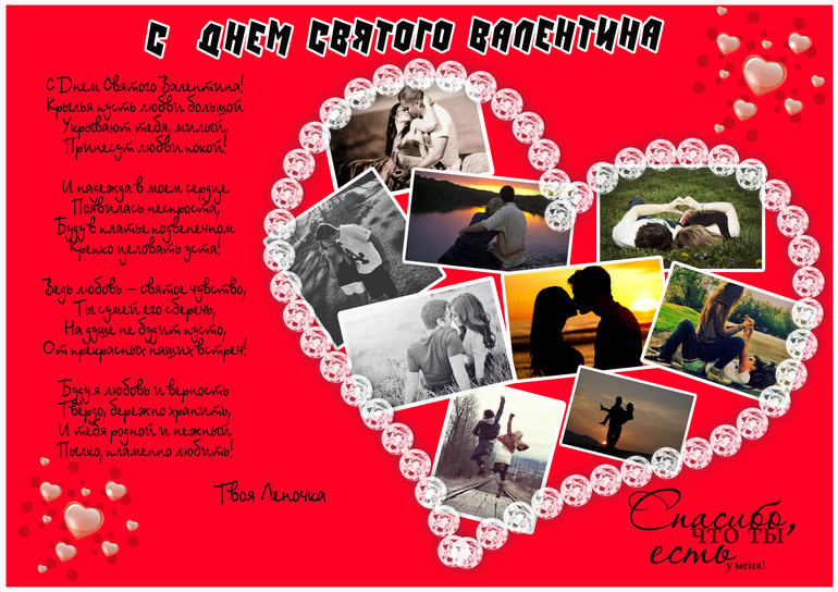 Приближается День Святого Валентина. Порадуйте своих любимых плакатом с совместными фотографиями!
