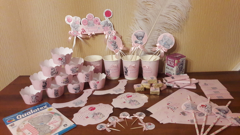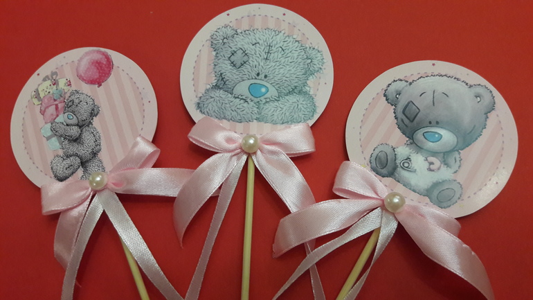 Аксессуары для Украшение праздникаПредлагаю изготовление набора для оформления кендибара или помещения в тематике мишки Tatty Teddy (Me to You), который идеально подойдет для празднования рождения или годовасия девочки!