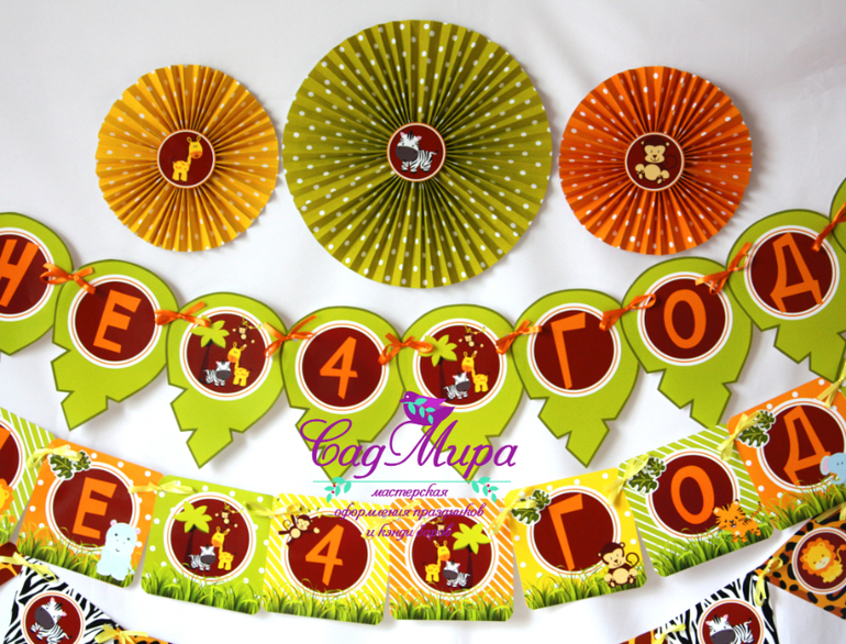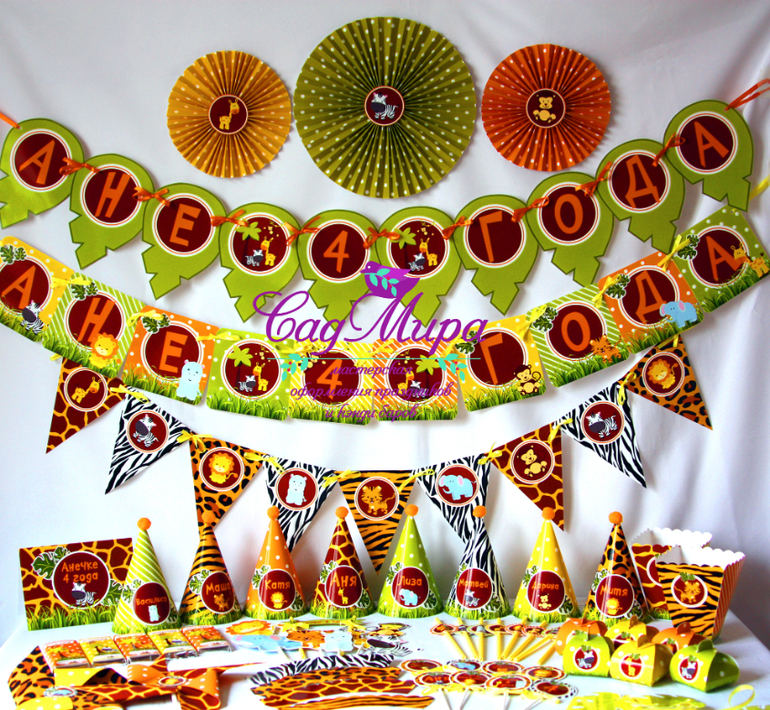 Набор атрибутики для оформления дня рождения в стиле Сафари Пати Джунгли.