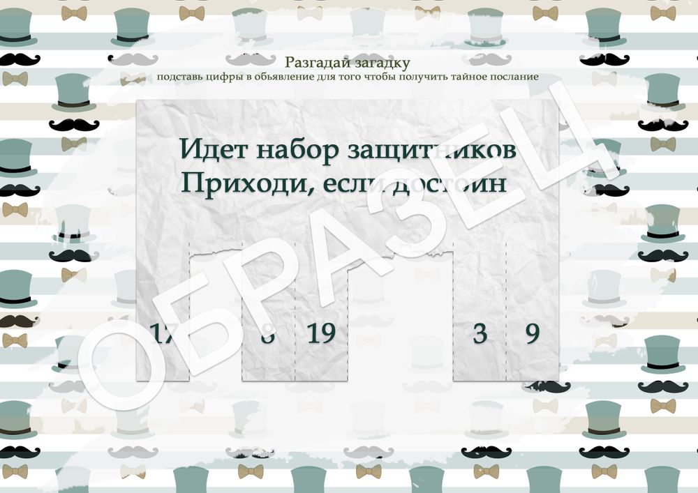 Игра рассчитана на детей возраста 10-14 лет. Мы предлагаем игроку или игрокам пройти тест на защитника, который должен обладать не только силой, но и умом, отвагой, смекалкой и многими другими качествами. Чтобы справиться со всеми заданиями придется решить логическую загадку, сыграть в шахматы, расшифровать тайное послание и пройти много других испытаний.