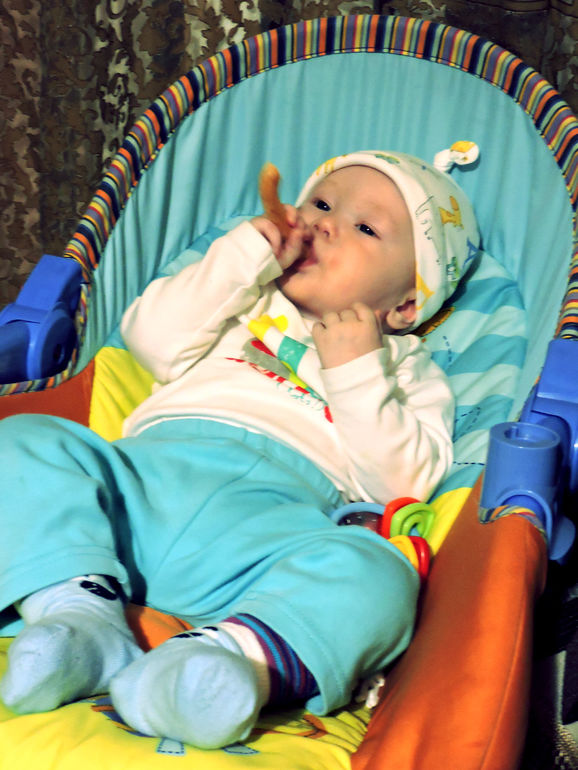 Значит у тебя молока хватает, она наедается. Это же хорошо) А у меня, видимо, не хватает уже. Сегодня сели обедать, дали баранку, а он ее бросает и мне в тарелку хочет ручку запустить)) Кстати, нашла обалденный рецепт томатного соуса. Потом напишу.
