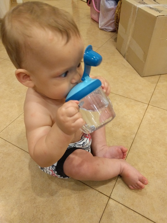 Давала воду два раза "по приколу", как бы ужасно это не звучало)) один раз их ложки - пил с удовольствием. Второй раз из чашки - больше разлил, конечно) и в тот же раз из такого поильника.