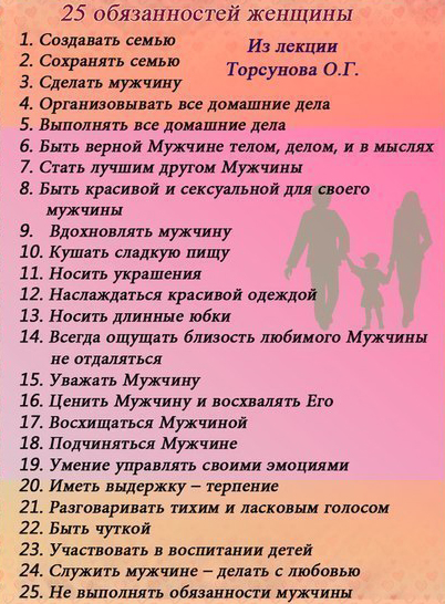 Где же взять сил, чтобы на всё и на всех хватило? Надо накапливать свою женскую энергию в салонах, магазинах в разговорах с подругами. Многие женщины устают на работе, с маленькими детьми, по другим причинам. Результат современного общества - уставшая женщина. Но поймите, что мужу нужна счастливая жена, а не уставшая. Если она будет приносить в дом много денег, он за это любить её не станет. Мужчина хочет приходить домой, где его ждут, где его накормят с любовью приготовленным обедом, где всё убрано и постирано с любовью, его любимой женой, а не поварихой и горничной.