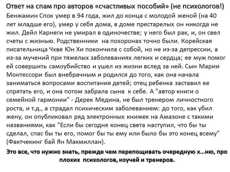 Аник в Психология 10 лет Ответ на спам про "плохих" авторов. Библиотека Психологии. Статьи, очерки, полезная информация. Посмотрите еще 20 записей на эту тему Отменить Ответить Lavi К вопросу о том, что каждую информацию в инете нужно проверять... а я почти в основной пост-спам... 28.02.2016 Ответить Полностью согласна ☝️ Путь к Себе или Суть психотерапии Чаты Беременных Выберите чат: Январята-2026 Февралята-2026 Мартята-2026 Апрелята-2026 Майчата-2026 Июнята-2026 Июлята-2026 Августята-2026