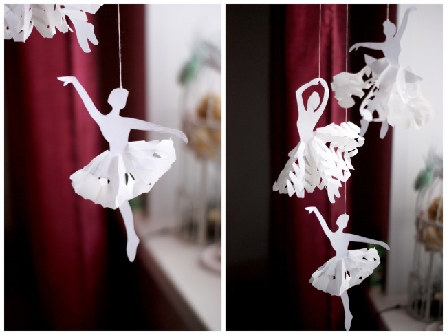 Вырежьте снежинку и балерину по . Наденьте снежинку на балерину.