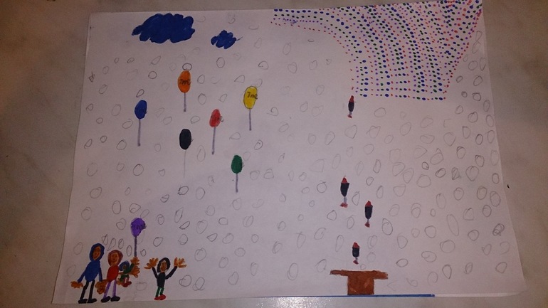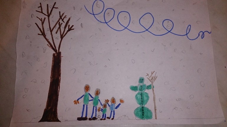 Согласна с комментарием ниже. В целом рисунки позитивные. Но мальчик побольше как-то отдельно от всей семьи. Побольше внимания ему уделяйте