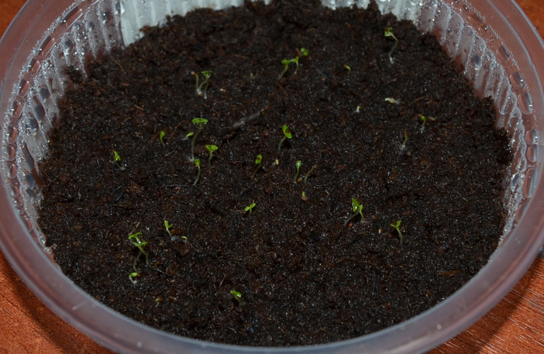 дома посадила в маленькие баночки, накрыла пленкой. как проклюнулись, открыла, доростила до 6 листика, буду рассаживать