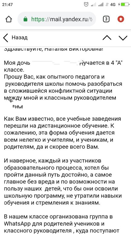 По совету многих, к комментарию, где я выложила скрины переписки с учителем, при чем не самыми трэшевыми, я написала письмо директору.